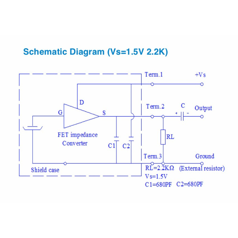 That one has an internal FET and some noise reduction capacitors so that just needs a 2k2 resistor and a capacitor (and 1.5 DC power) to make it work with an home-made amp or it will just drop into a sound card's microphone jack - but be aware these are TRS (tip, ring, sleeve) and you'll need to make sure you connect the power the right way.